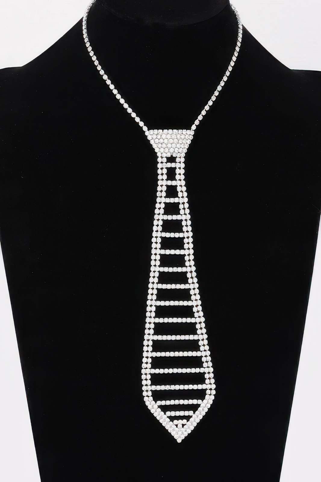 Make a bold fashion statement with the Rhinestone Necktie Necklace. This eye-catching piece blends the elegance of sparkling rhinestones with the edgy flair of a necktie silhouette. Its unique design instantly elevates your outfit, whether you're dressing up for an event or adding shine to your everyday look. Lightweight and comfortable to wear, this necklace turns heads while offering effortless style.