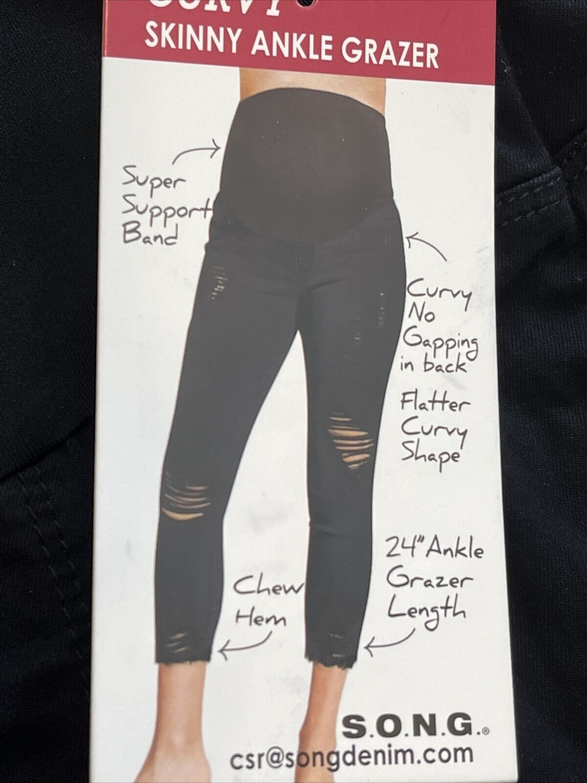 - new S.O.N.G. Women's Curvy Skinny Ankle Grazer MATERNITY JEANS sz S black pants