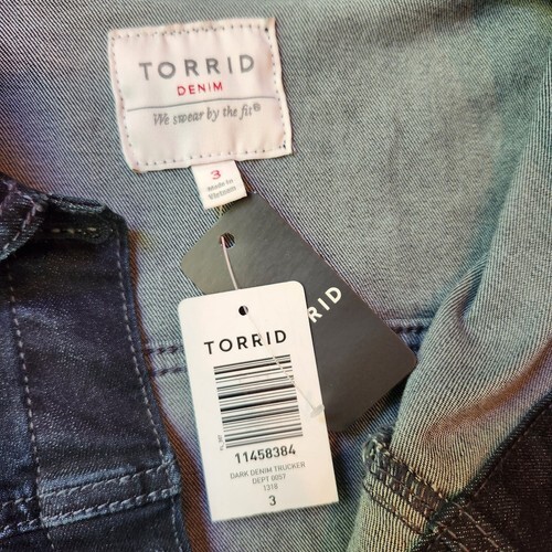 - New Torrid Dark Wash Denim Jean Trucker Jacket Plus Size 3X