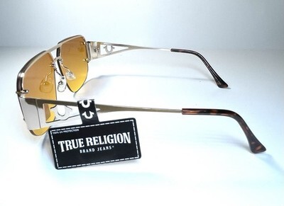 - NEW TRUE RELIGION Aviator Gold Metal Logo Classic TR12604 Sunglasses + Case