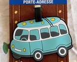 - New VW Bus Van Luggage Tag w Surfboard Aqua Blue 4.5 x 3" Made of Vinyl