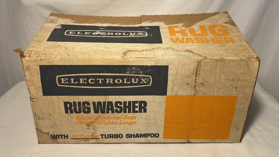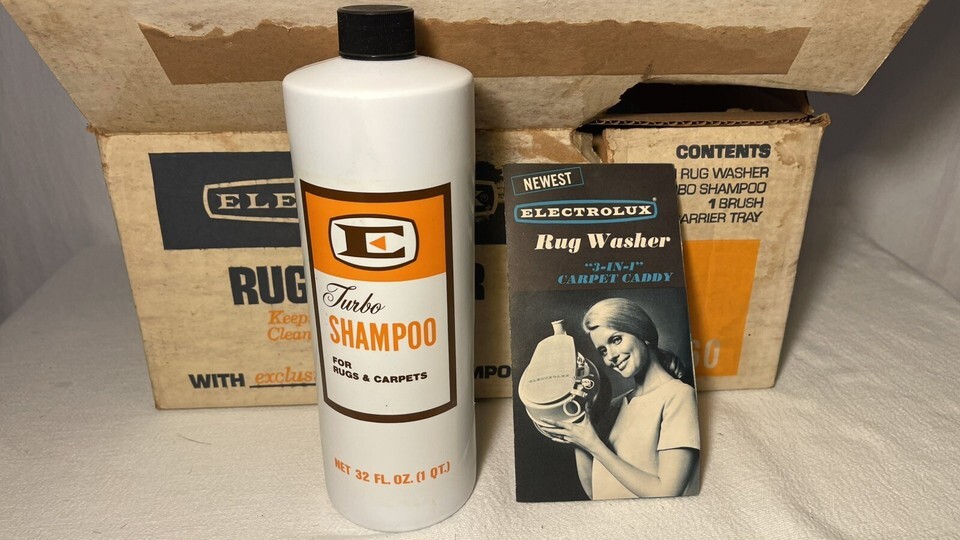 The product is a vintage Electrolux shampoo head with a caddy tray that is never used. It is designed for use with a vacuum cleaner.