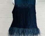 New Women's Size Lage ANTHROPOLOGIE GREYLIN FEATHERED FRINGE Sleeveless Blue TOP