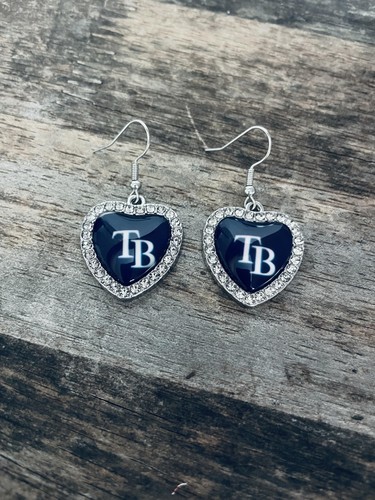 - NEW WOMENS TAMPA BAY RAYS BASEBALL SILVER CRYSTAL HEART EARRINGS | DANGLE DROP