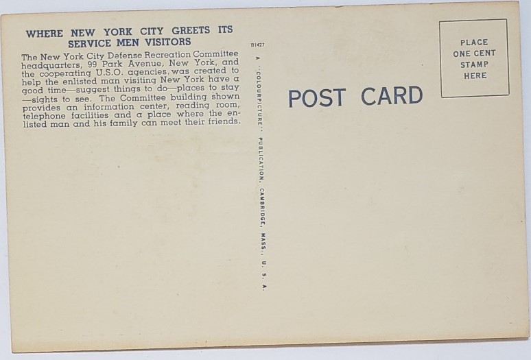 - New York City WWII Defense Recreation Committee Soldiers Sailors Linen Postcard