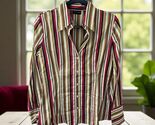 - New York & Company Button Down Shirt SIZE Medium White green gold berry Stripe