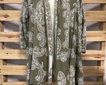 New York & Company Open Cardigan Sweater Green White Damask Woman's Size M KG