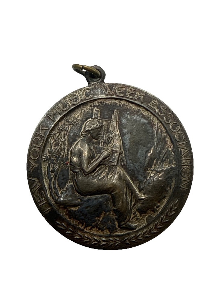 Up for sale is a medal made by an unknown American maker to celebrate New York Music Appreciation Week. This is an award given to presumably the best piano player in the borough. It was awarded in 1924-1925, so it doesn?t look too bad for over a century of age! Found at an estate sale on Long Island.