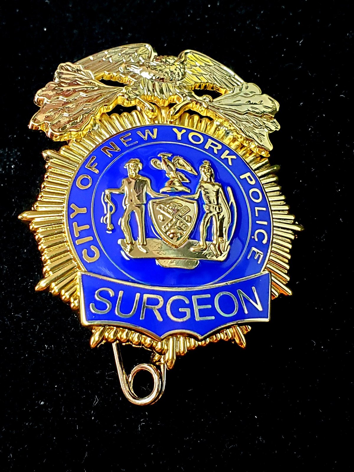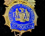 From the City that Never Sleeps, this Excellent, Extremely High Quality, Full Size collectible at a Fantastic Low Price. Includes oversized pin, disinfecting prior to shipment and protective packaging. New York NYPD Surgeon Breast Shield 2.25" x 2.5" - Condition is New. Shipped with USPS First Class Package. PLEASE NOTE THAT THIS WILL NOT BE SHIPPED TO NY STATE.