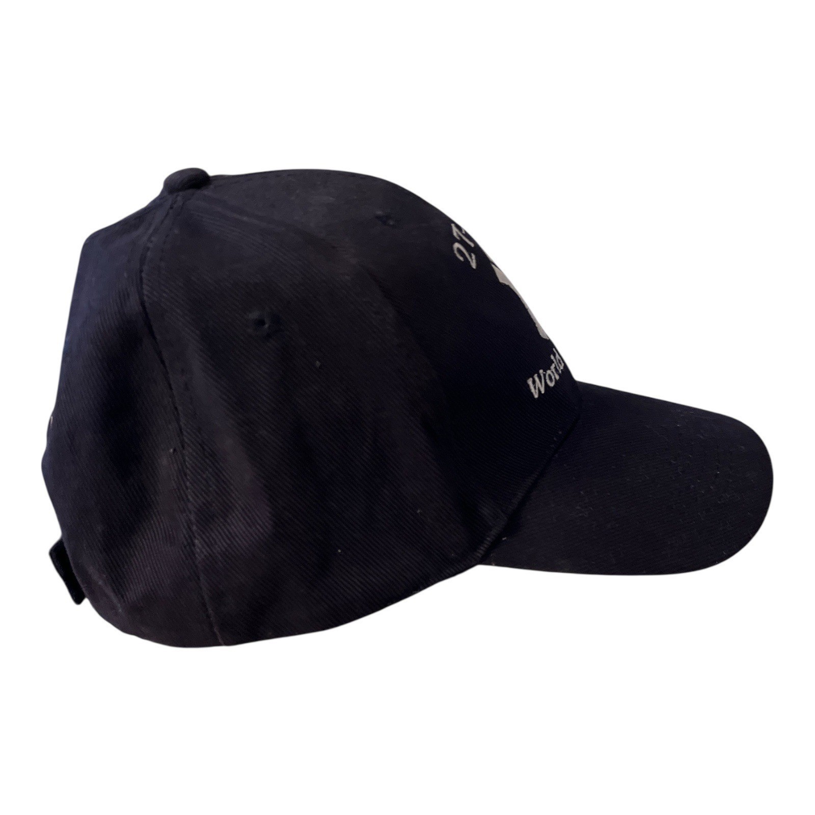 Celebrate the legacy of the New York Yankees with this navy blue commemorative baseball cap, highlighting their **27 World Series Championships**. Featuring bold embroidered lettering and the iconic "NY" logo on the front, this cap is a true collectible for fans. The back includes an embroidered H R Block sponsor logo, making it a unique promo-style piece.