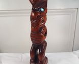 - New Zealand Maori Hand Carved Kauri Wood Teko Teko Tiki Totem Statue MOP eyes