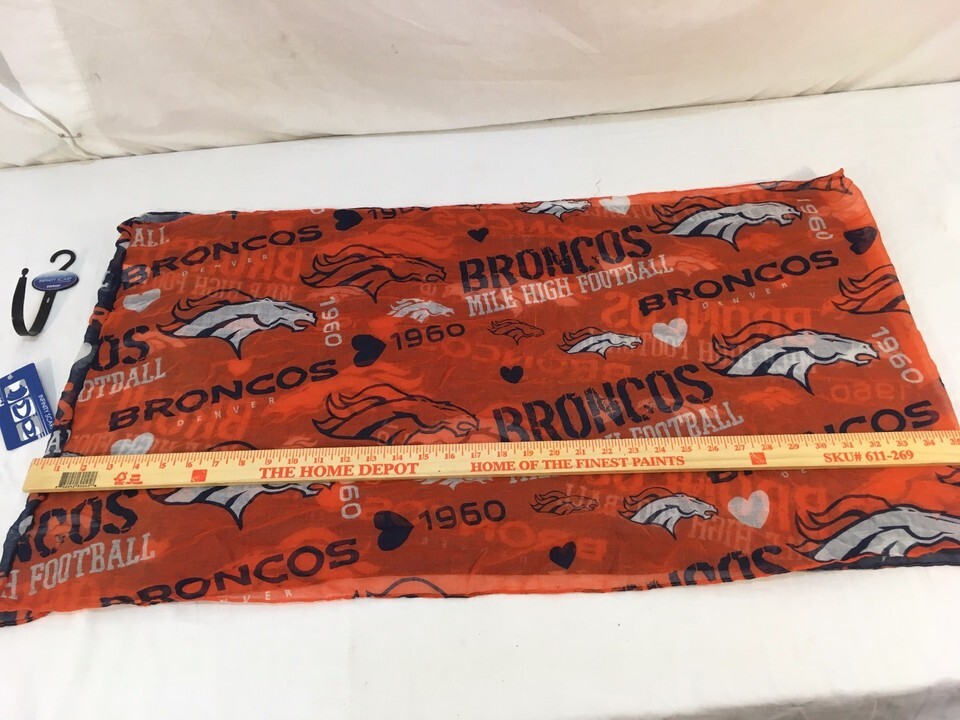 Sport your passion for the Denver Broncos with this Licensed Holographic Infinity Scarf. Its logo print and team colors are a subtle way to add a touch of enthusiasm to your outfit. Any ensemble will get a chic upgrade when layered with this lightweight Denver Broncos accessory. Brand New with Tags and free fast shipping .