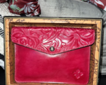 - nice PATRICIA NASH Magenta TOOLED LEATHER FLAP CLUTCH/IPAD CASE 9"W X 6.5"H