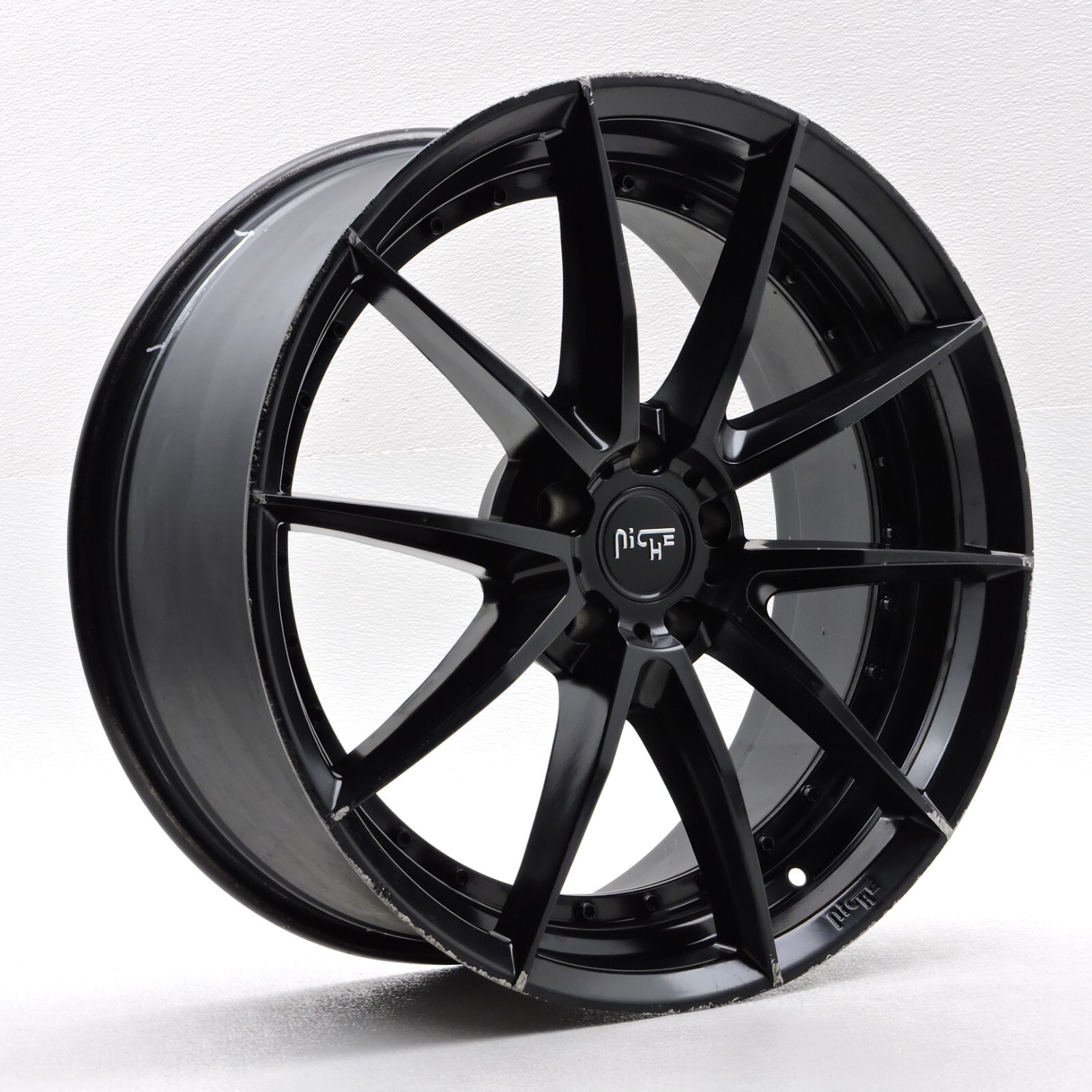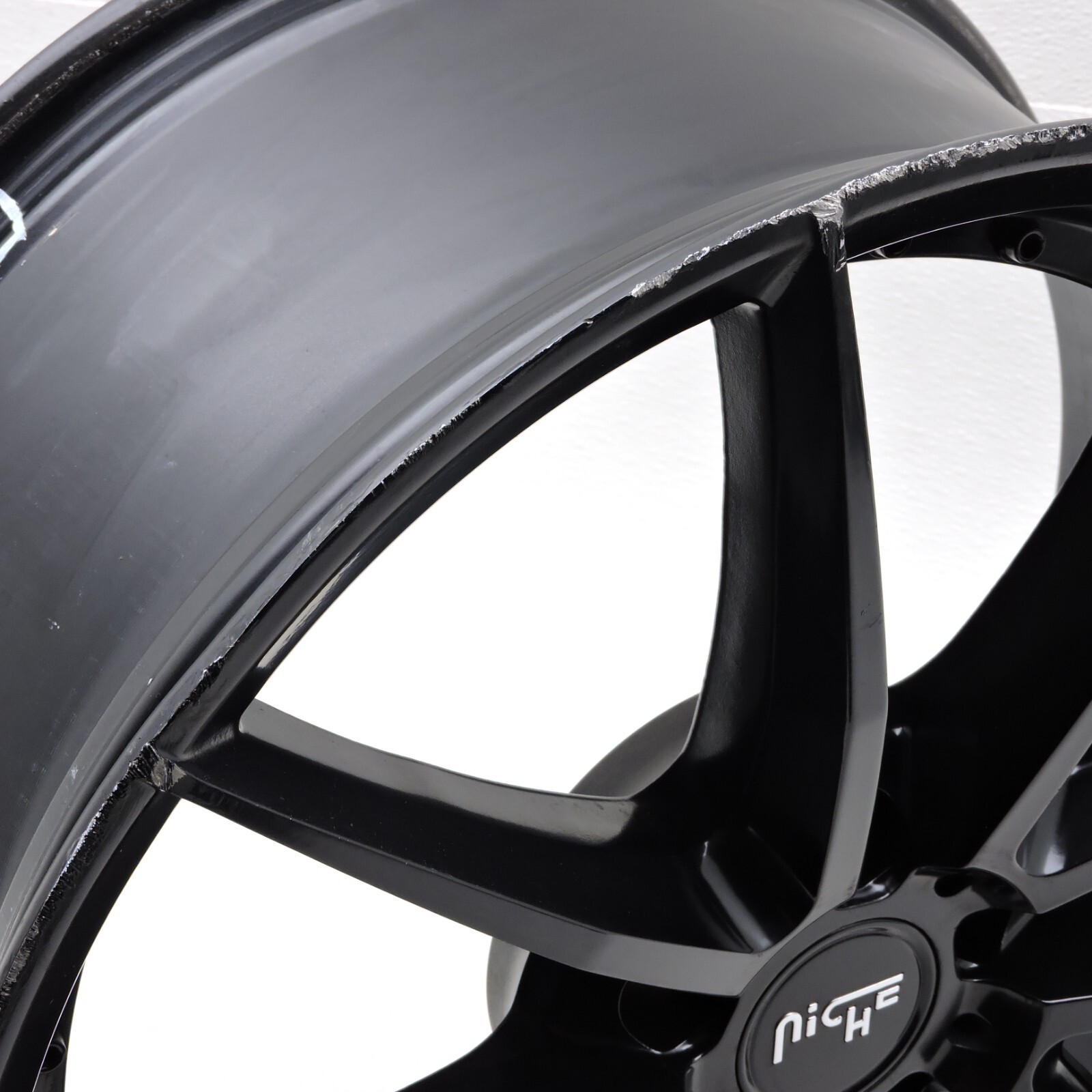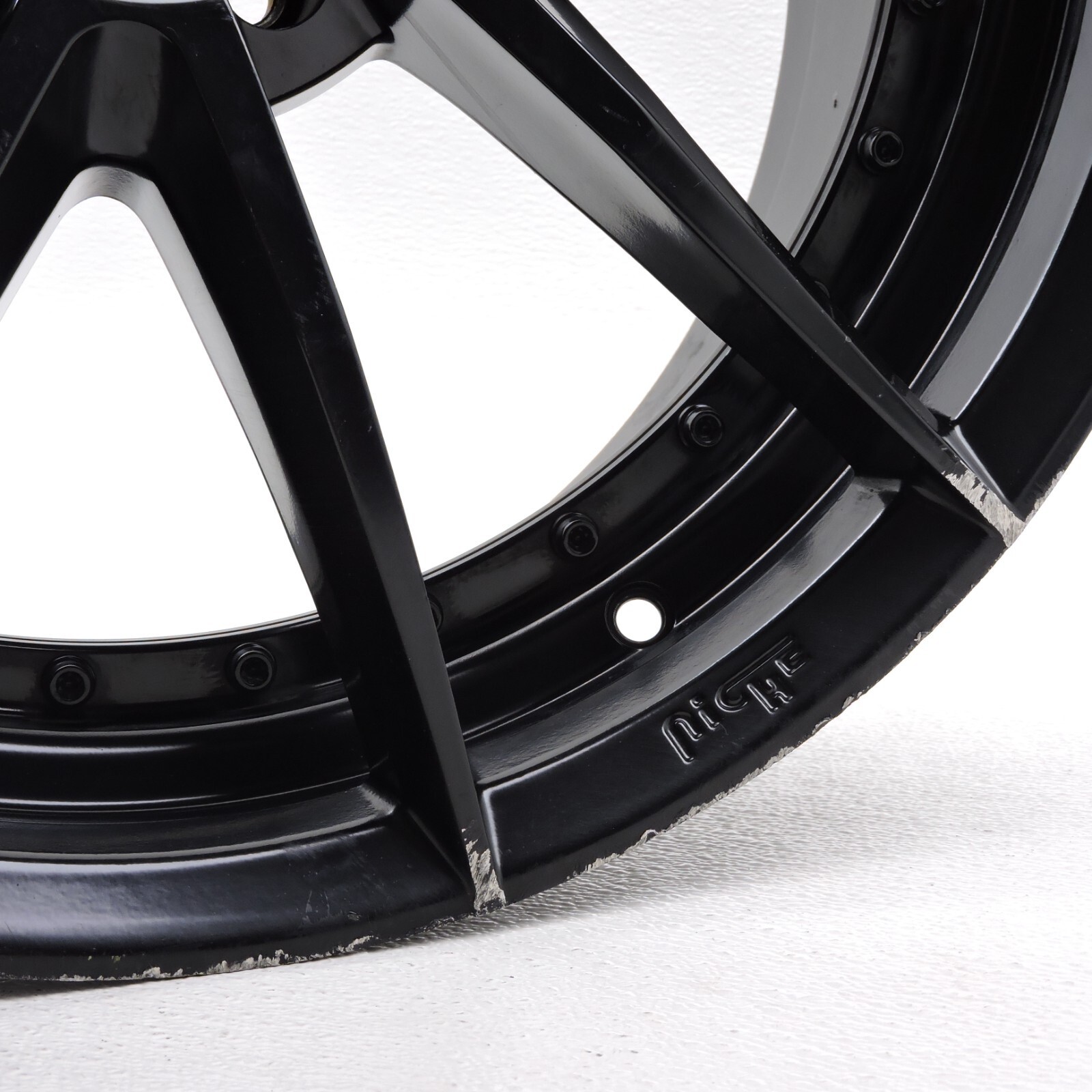 Item: 20" Niche M196 Sector Black Rim (20x9 ET35 Center Bore: 72.56) - Wheel has an inner wobble, and will need repair - Used - Visible cosmetic blemishes/ scuffs/ curb rash/ bent as shown - No cracks/ No leaks - please view pictures for further details -