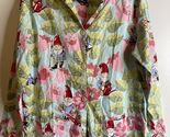 Nick & Nora Women Gnome Floral Long Sleeve Collar Button Pockets Sleep Shirt Med