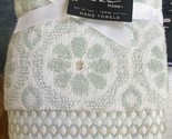 Nicole Miller Hand Towel Set 2- Sherbert Green/White- 100% Cotton - New