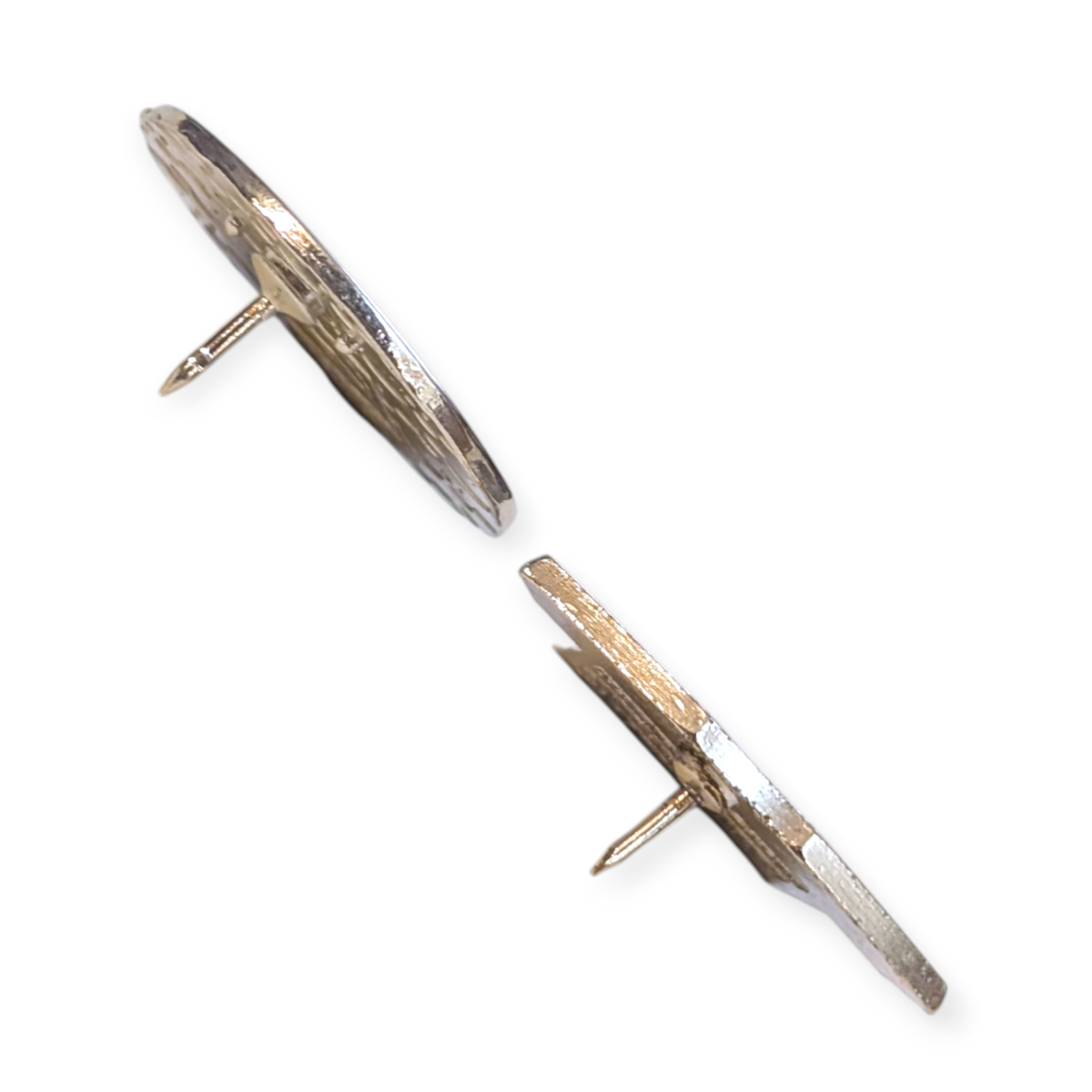 • Sculpted metal with enamel, and finished with rubber backs to keep secure.