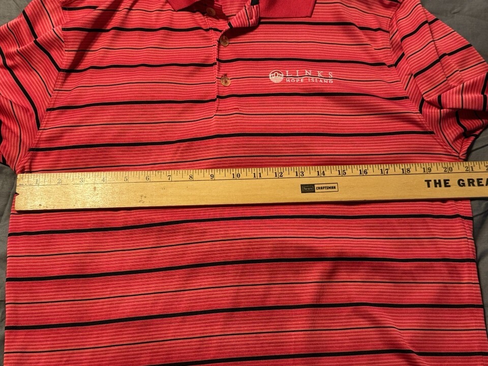 - Nike Golf Dri-Fit Polo Shirt Medium Red Black Stripe Links Hope Island
