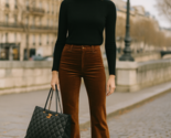 - Nili Lotan Derek Cognac/Brown Velvet Flare Mid Rise Pants - size 6 - New