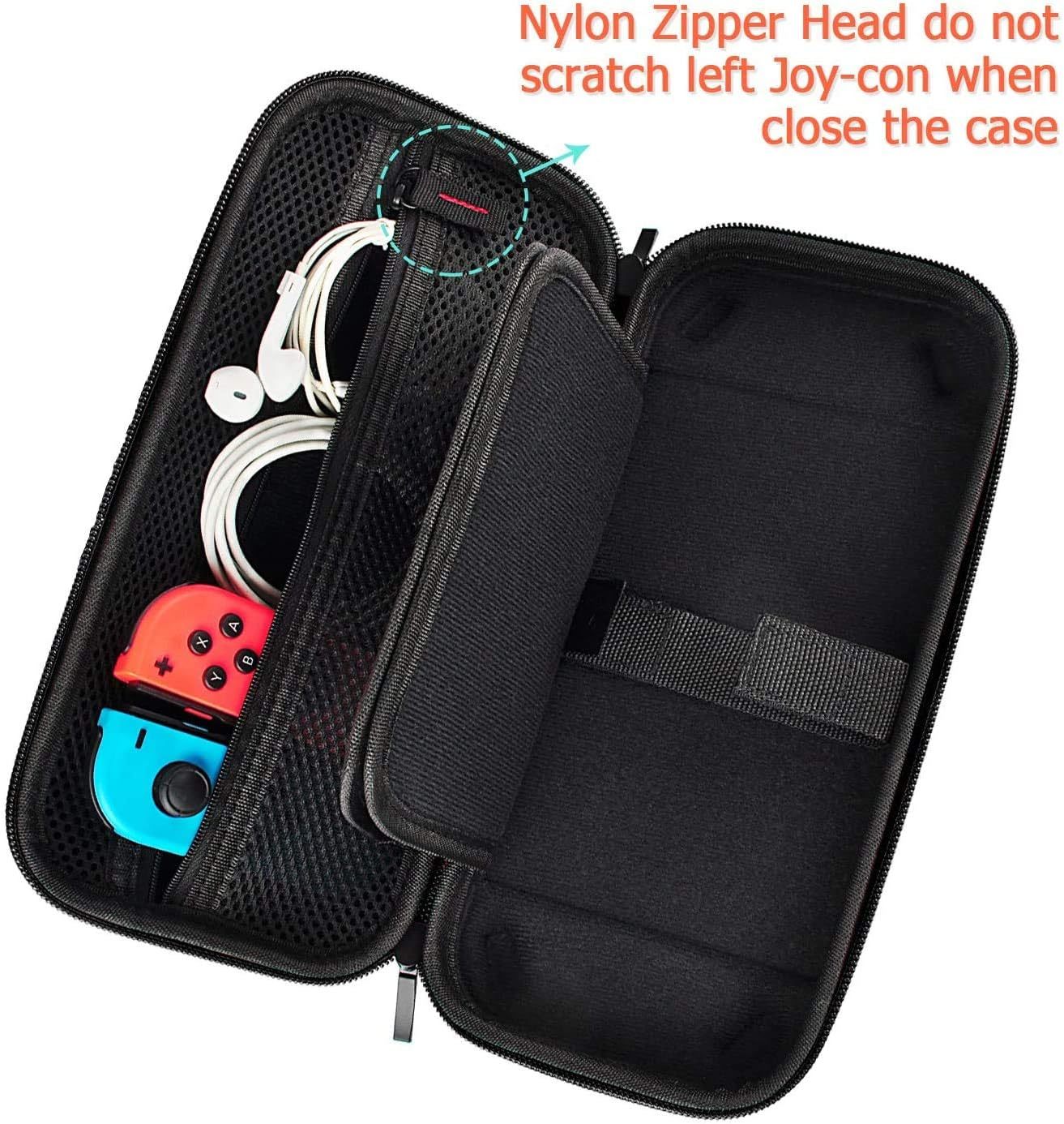 Fit Nintendo Switch and OLED Model Original Charger AC Adapter Case - Build with 20 game card slots, High Quality Durable hard Shell Protect your Nintendo Switch Console free from scratches Zippered Mesh Pocket - A large zippered mesh pocket provides secure storage room for some small Nintendo Switch and OLED Model accessories like small Charger, charging cable, slim power bank, earbuds, and 2 extra Joy-Cons. Zipper ensures your small items do not fall out. Unique Inner Zipper Design - We use High Quality Nylon Zipper Head, not like the other Nintendo Switch case's Iron Zipper Head will scratch your precious switch?We show this contrast in the 5th picture?. Multiple Protection - Our Switch Carry case is big inside but small outside. There is absolutely strong enough for plenty of daily protection. Designed to make your new Nintendo Switch Console even more portable travel friendly Service - Deruitu adhere to the high-quality products and services for the purpose