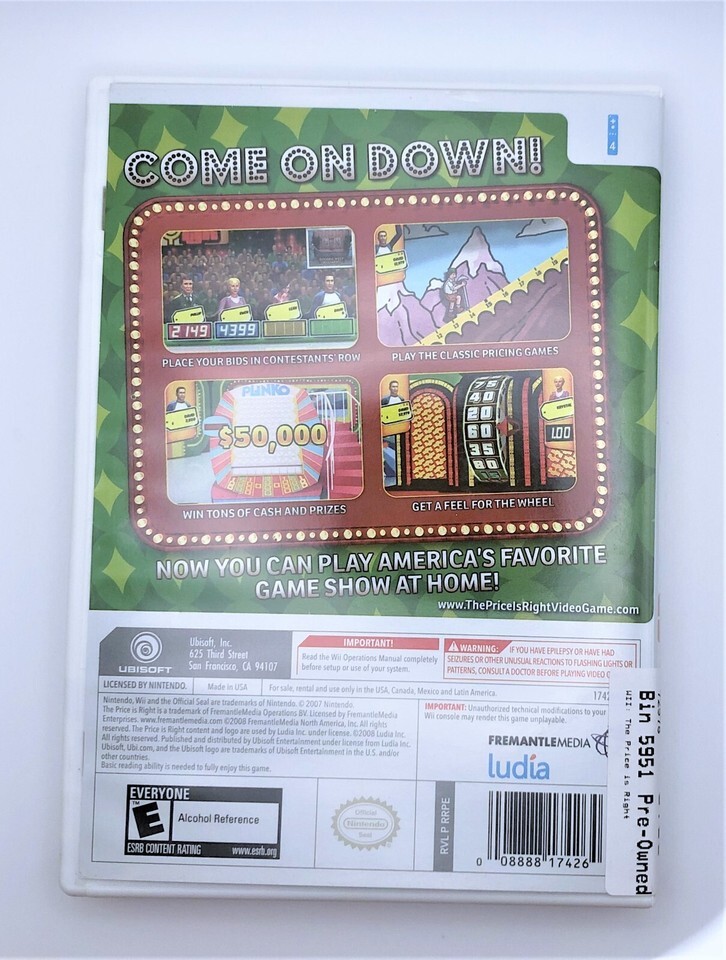 Nintendo Wii The Price is Right 2007 Video Game. Comes with case, cover, manual and game. Game is in good, clean, working condition. I do have other video games and have calculated shipping set up in cart.