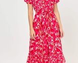 - Niza Womens Sz 46 US-2XL Floral Midi Button Front Belted Fuchsia Dress New