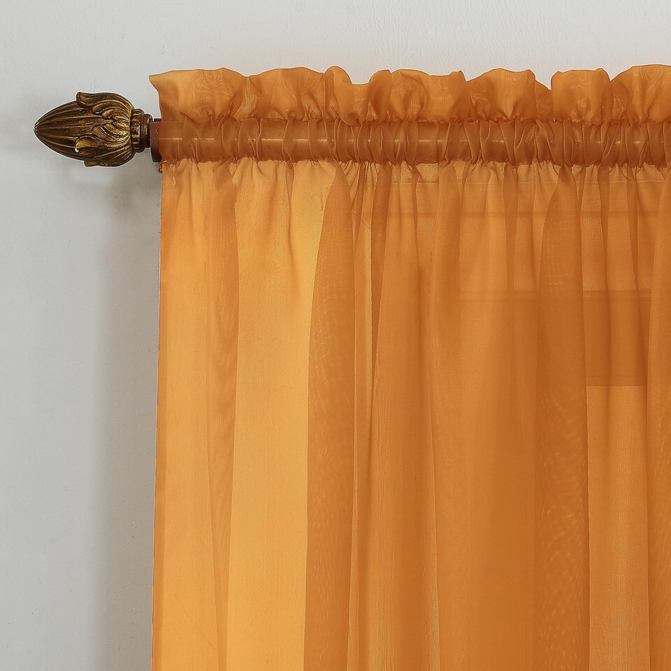 - No. 918 Calypso Sheer Voile Rod Pocket Curtain Panel Orange 59x84