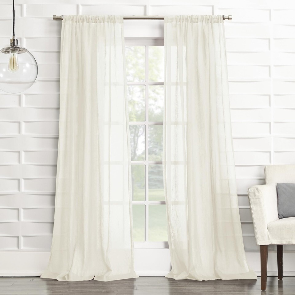 - No. 918 Tayla Crushed Texture Semi-Sheer Rod Pocket Curtain Panel 50x108 Cream