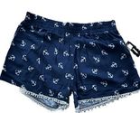 - No Boundaries Blue Anchor Pattern Nautical Lace Trim Shorts Size XS Elastic