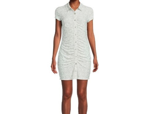 No Boundaries ~ Button Front ~ LARGE ~ Diamant ~ Ruched ~ Polyester Shirt Dress