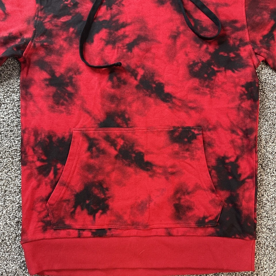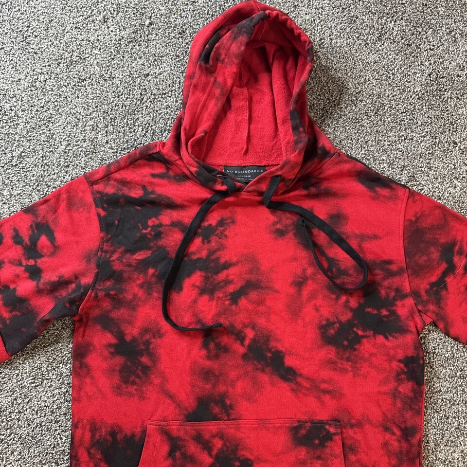 - No Boundaries Hoodie Men (S) Small Red Black Tie Dye Hooded Cropped Sleeves