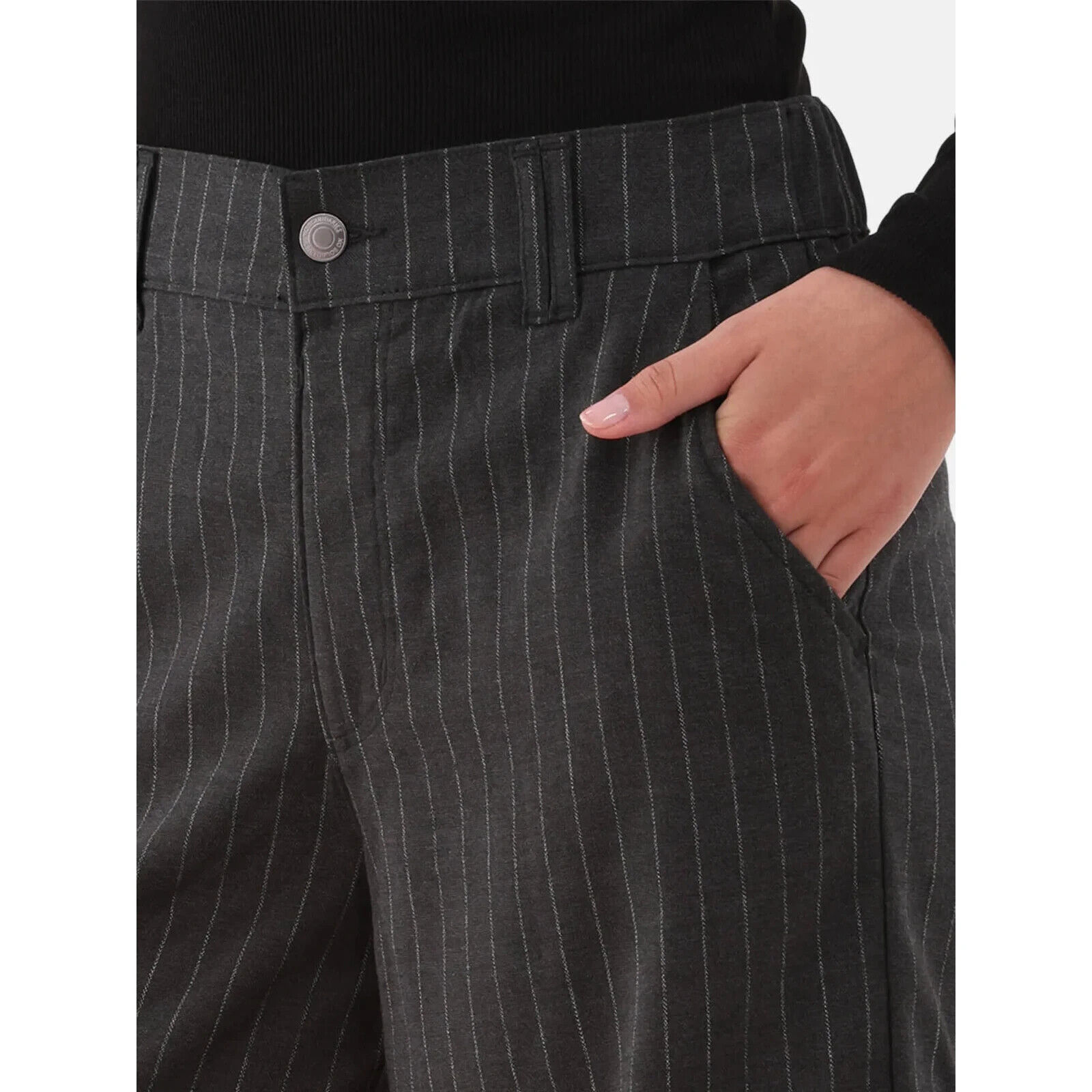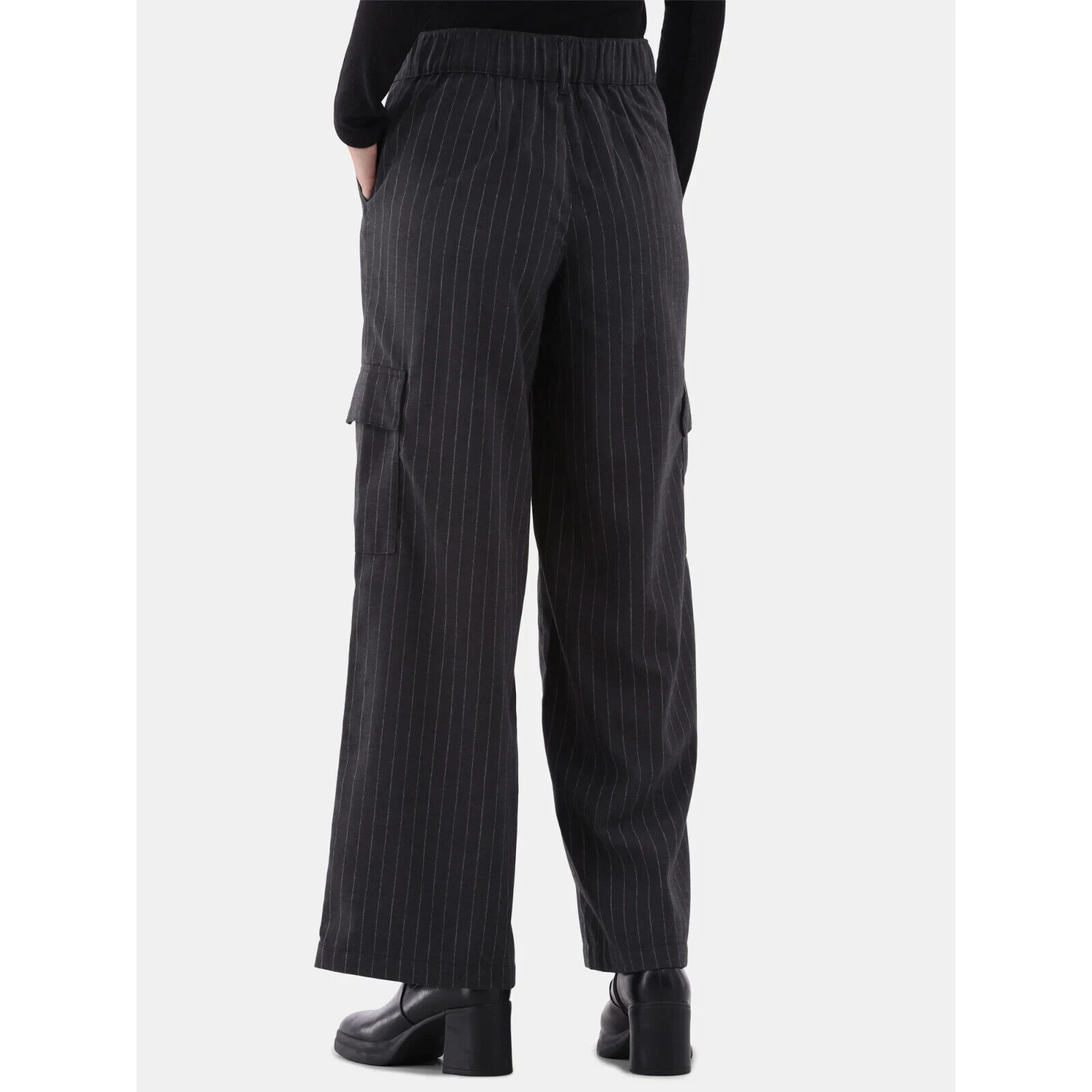 - No Boundaries Junior's Cargo Wide Leg Pants, Pin Stripe Size S(4-6)