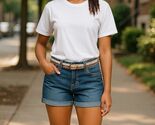 - No Boundaries Juniors Denim Shorts Size 11 Blue Cuffed Belt Embroidered Pockets