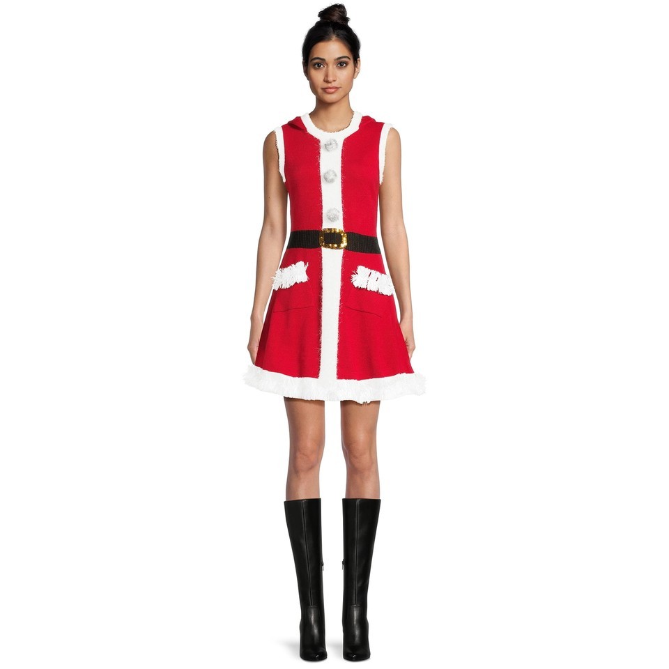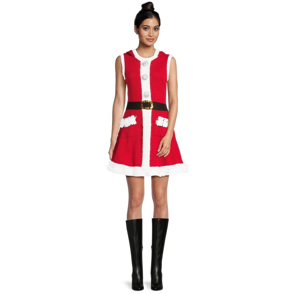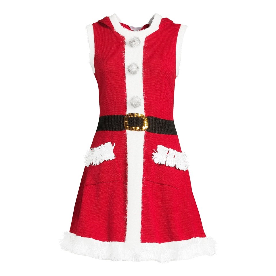 - No Boundaries Juniors Santa Dress with Hood, Size L (11-13) Color Red