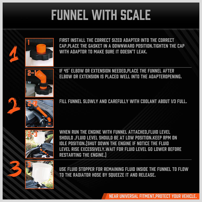 No-Spill Coolant Funnel Kit,Spill Proof Funnel Bleeder with Adapters.Universal