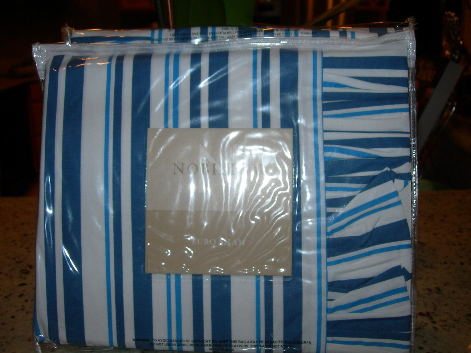 - NOBILITY "CALYPSO" 2PC EURO SHAM BLUE/WHITE STRIPE NIB
