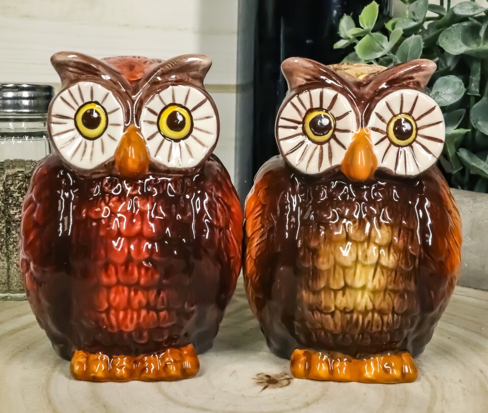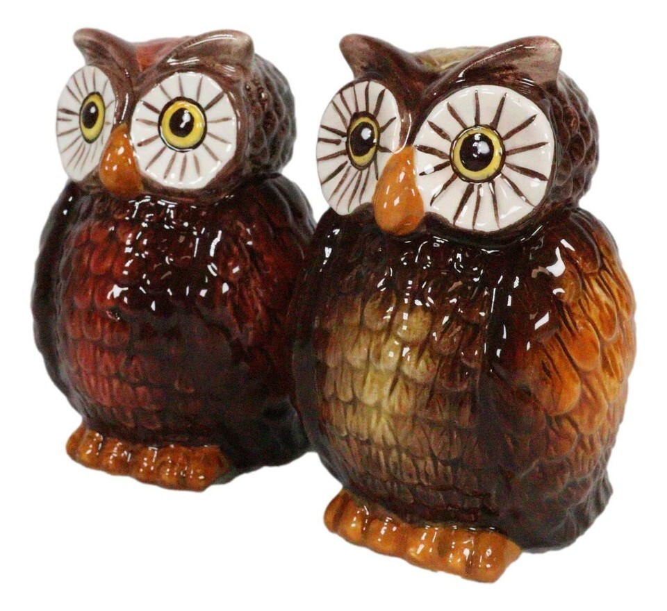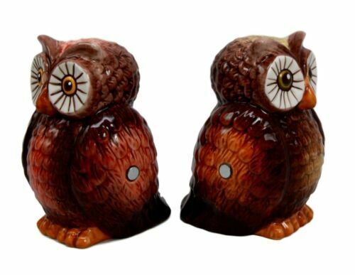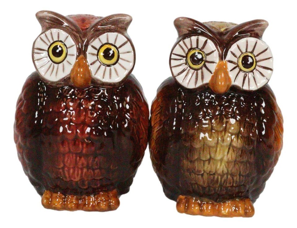 - Nocturnal Tropical Great Horned Owl Couple Ceramic Salt Pepper Shakers Figurines