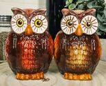 Ebros Nocturnal Tropical Great Horned Owl Couple Ceramic Salt Pepper Shakers Figurines