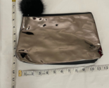 Nordstrom Clutch/Makeup Case Pewter W Black Fur Pompom - e351