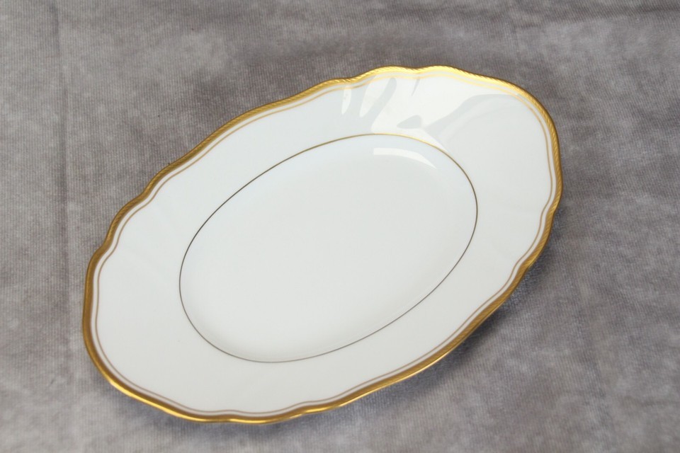 - Noritake Salutation Relish or Gravy Underplate Gold Trim 8-1/4"