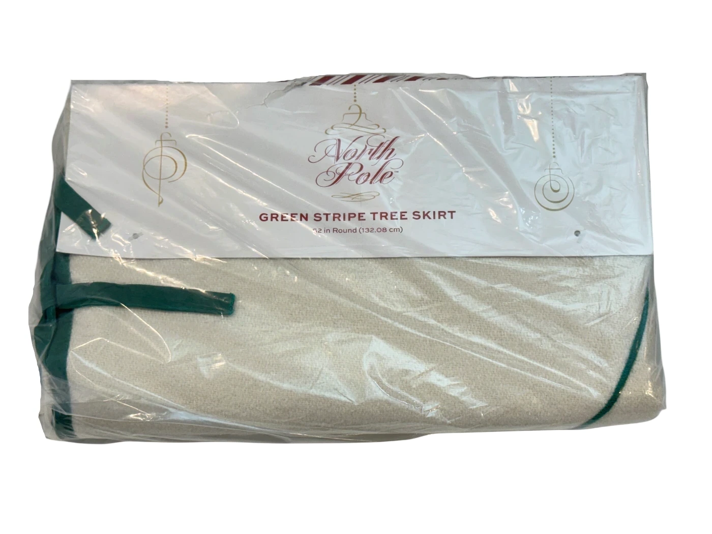 North Pole Trading Wool Christmas Tree Skirt Cream Green Stripe 52" x 52" Round