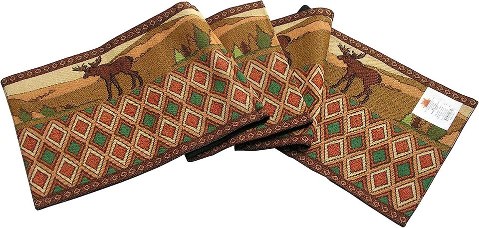 - Northern Exposure Mountains & Moose Design Table Runner 13x72 inches Woven