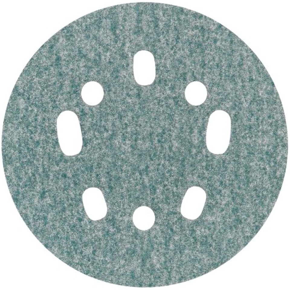 Norton 3X 5" universal vacuum hole Hook and Sand discs are manufactured with our patented ceramic alumina SG abrasive. Norton 3X Hook and Sand discs lasts 3 times longer than conventional aluminum oxide discs providing consistent finish. These discs are tear and clog resistant, will not contaminate a surface finish and the hook and loop backing allows for quick and easy disc changes for repeated use or until the disc is worn out