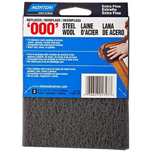 Norton Synthetic Steel Wool Pad, Polyester Fiber, 5-1/2" Length x 4-3/8" Width, Grit Type 000 (Pack of 2)