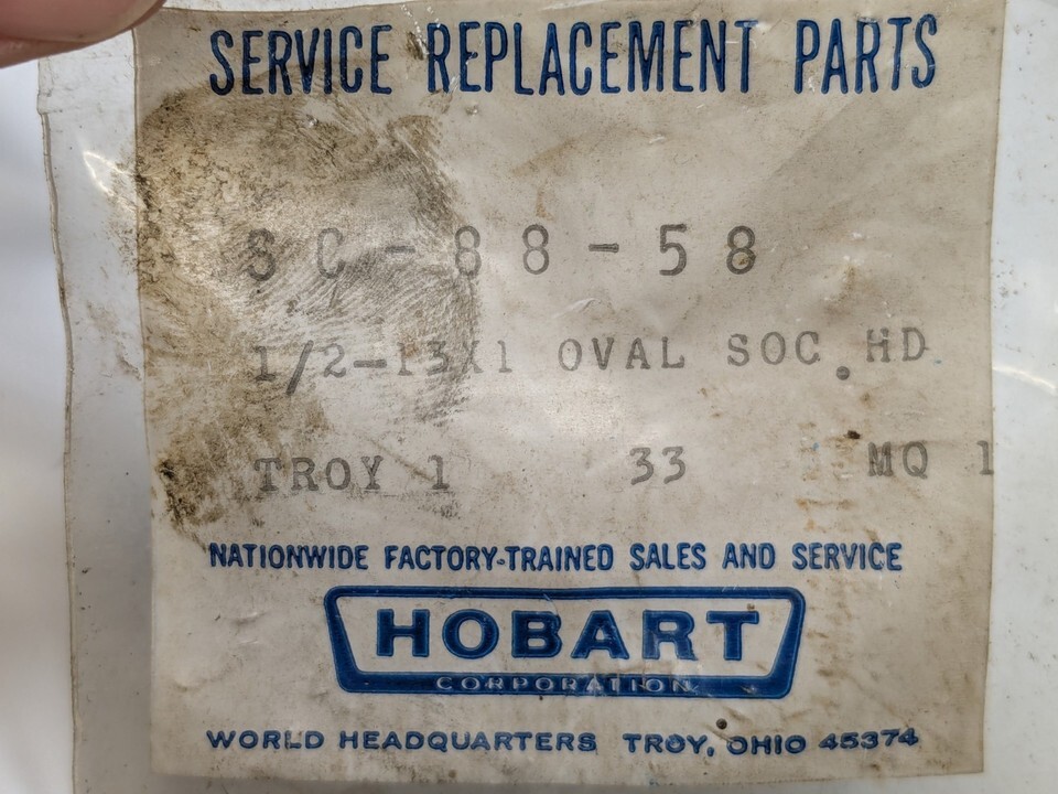 - NOS OEM Hobart 1/2 x 13 x 1 OVAL SOC HD SCREW Part# SC-88-58