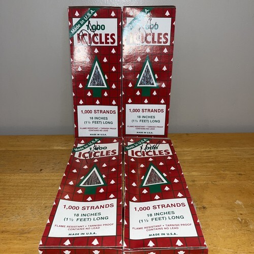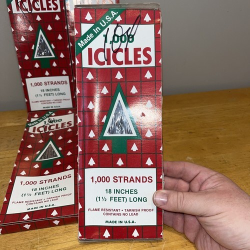 - NOS Vtg 70s 80s Lot of 4 SILVER ICICLES 1000 18" Strands Flame Resistant RAUCH