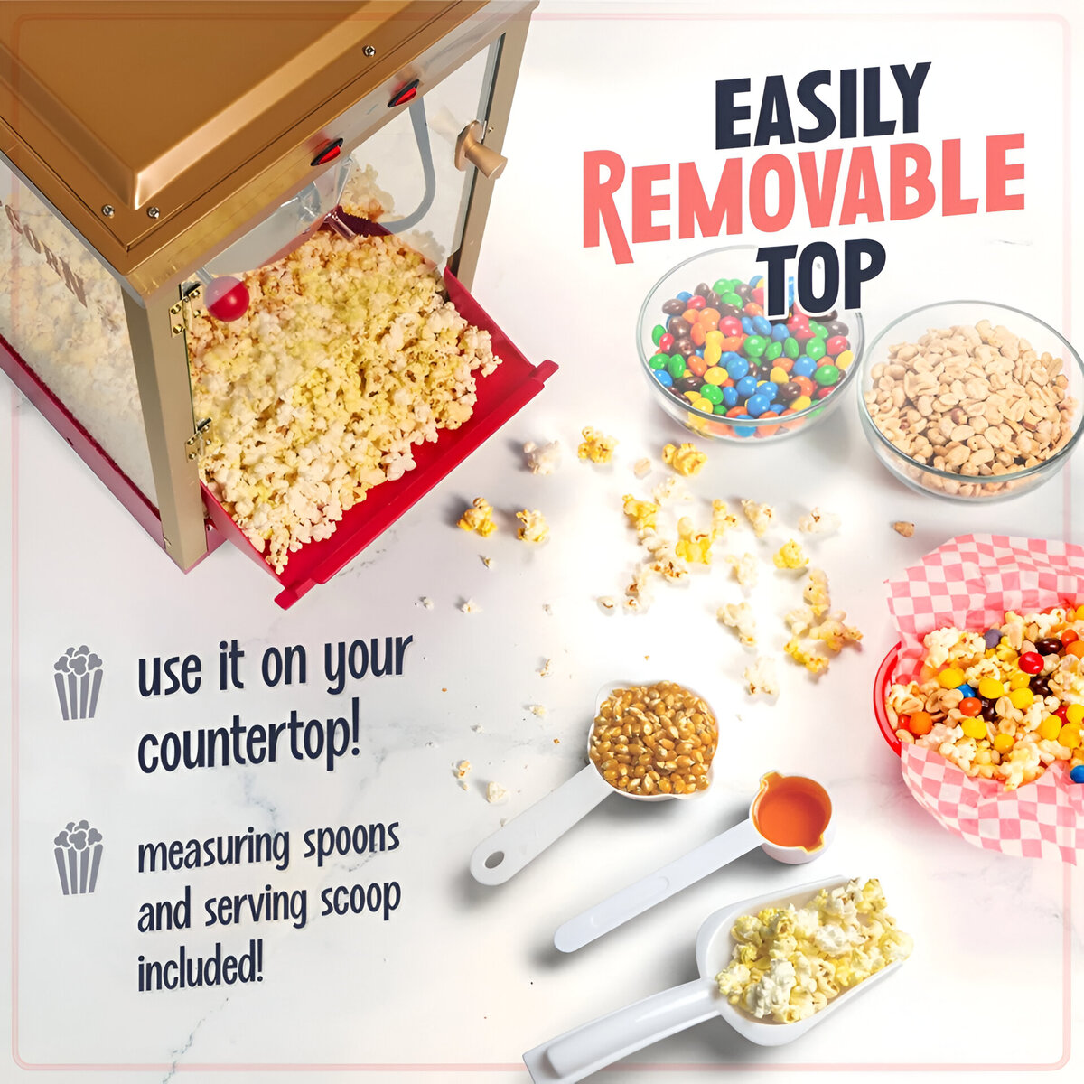 - Nostalgia Red Popcorn Cart with Candy Dispenser & 8-Oz Kettle – Makes 32 Cups