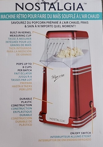 - Nostalgia ~ Retro ~ Countertop ~ Hot Air Popcorn Maker ~ RED ~ 8 Cups Per Batch