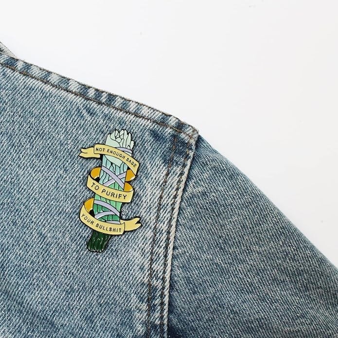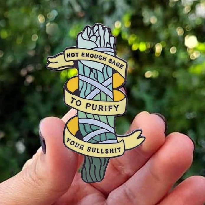 (funny enamel pin, spiritual humor, witchy pin, sage pin, sarcastic gift, XL enamel pin, metaphysical joke, not enough sage, spiritual sarcasm, aesthetic pin, witchcore, cottagecore accessory, gag gift, BS pin, spiritual meme)