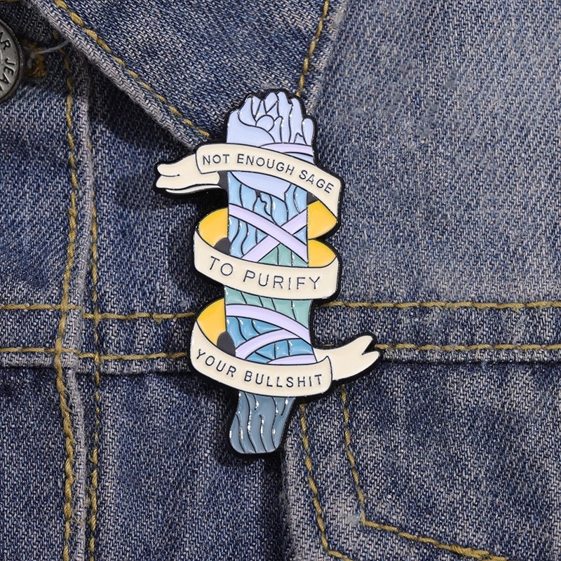 - NOT ENOUGH SAGE TO PURIFY YOUR BULLSH*T ♡ Funny Jumbo Enamel Pin ✩ Bohemian!